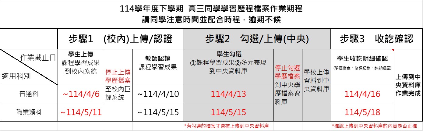 114學年度學習成果和多元表現上傳勾選作業時間: