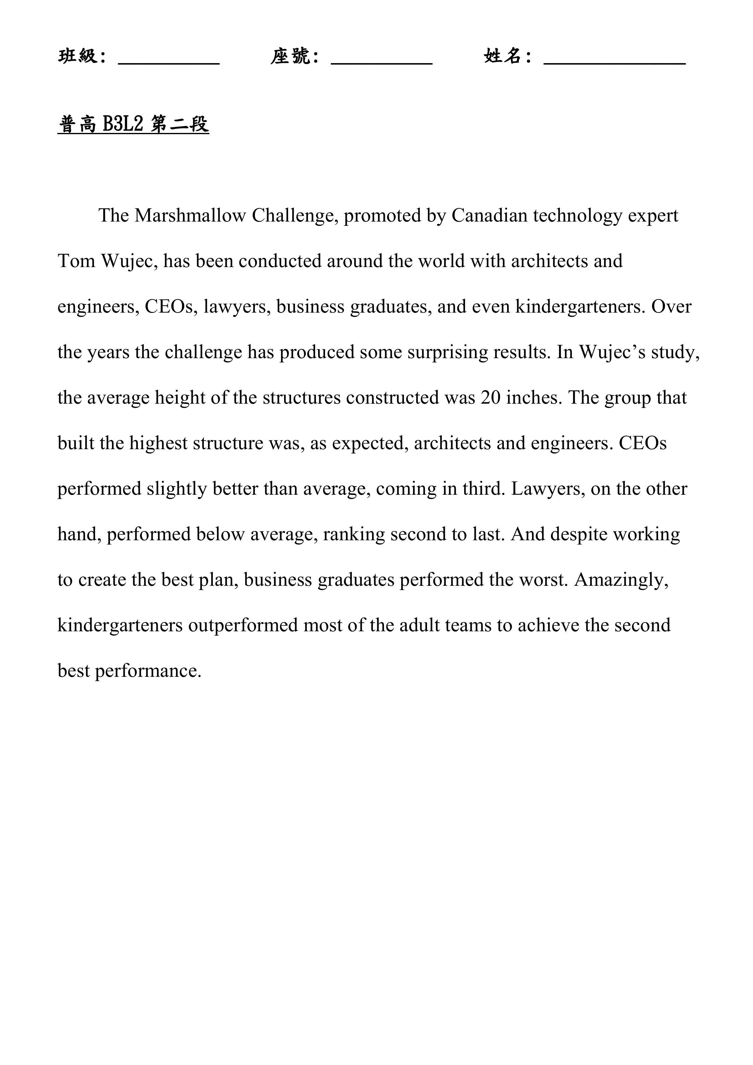 比賽內容:技高二:B3 L1-2課文 、普二B3 L2課文第二段。