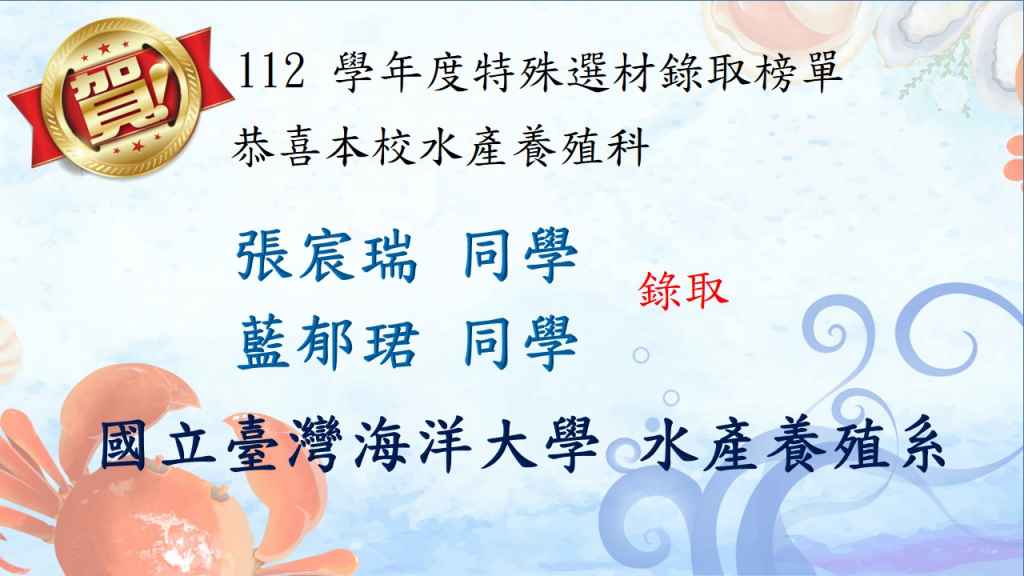 112年國立高雄科技大學 漁業公費專班