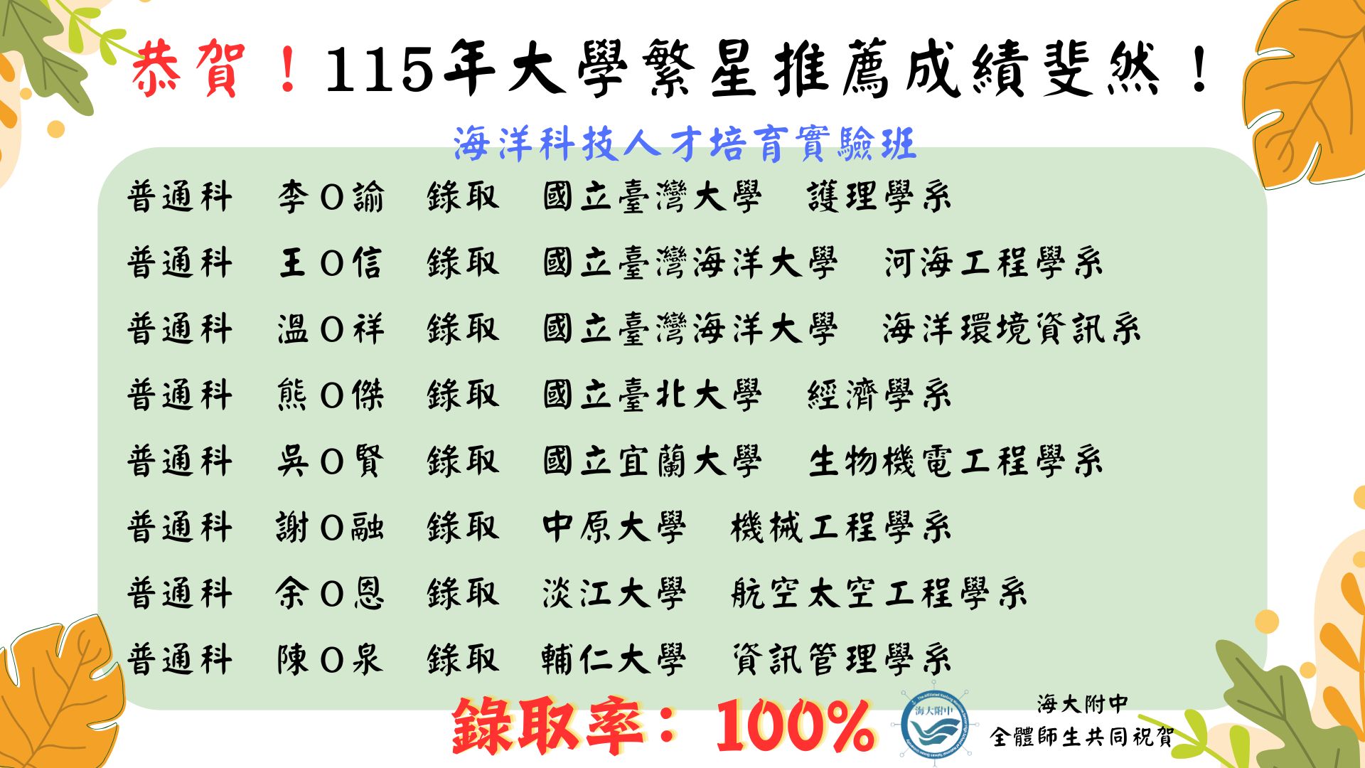 另開視窗顯示115大學繁星推薦榜單圖