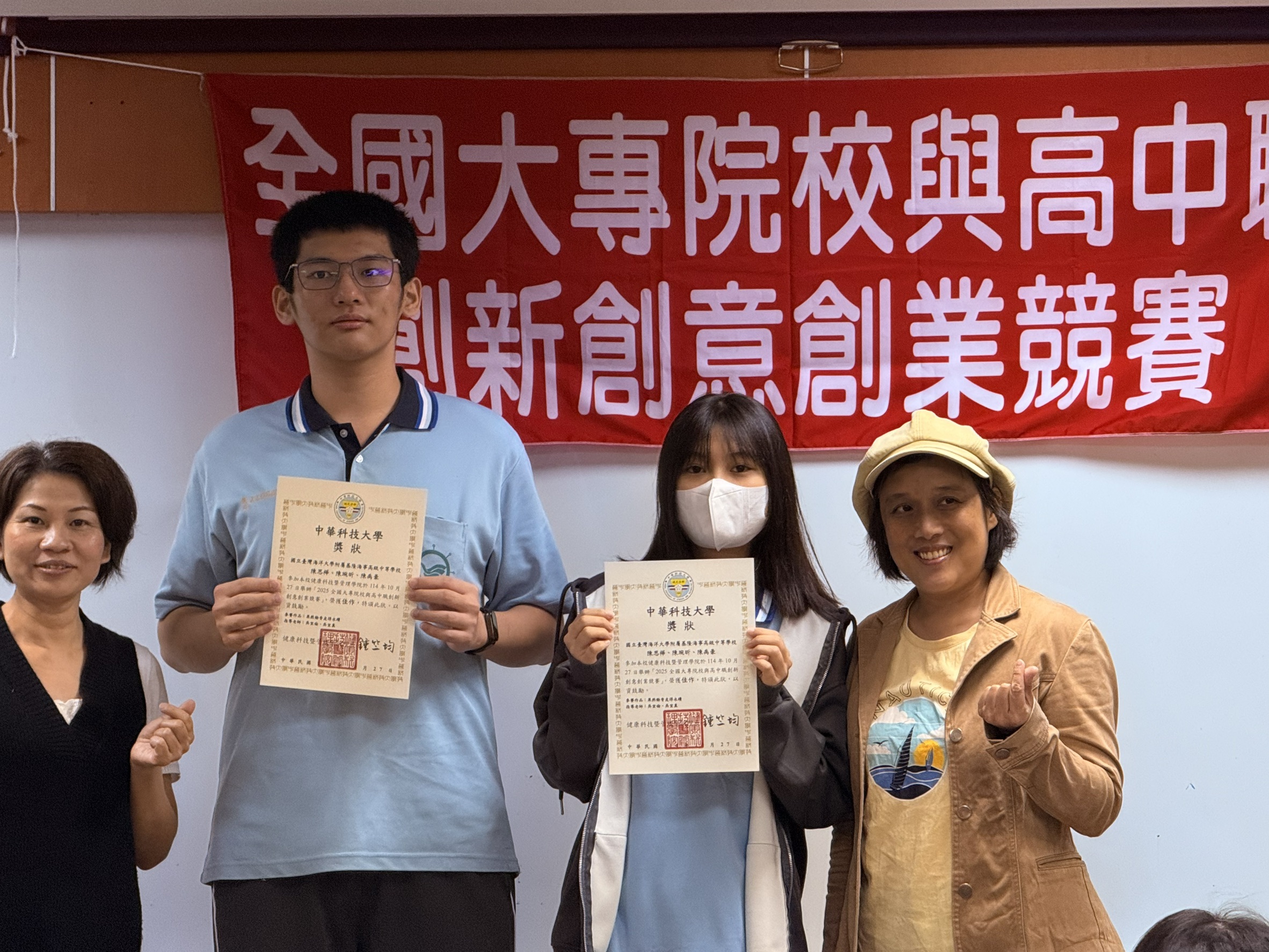 賀!!食品科陳O樺、陳O昕、陳O豪同學參加2025中華科大辦理大專院校與高中職創新創意創業競賽榮獲佳作!!食品科全體同仁敬賀!!